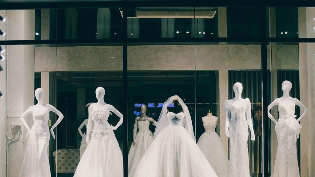 This happens constantly. The wedding gown fabric determines how light hits it, how it moves, and how it feels six hours into the reception. This guide explains what actually changes and how to choose without guessing.